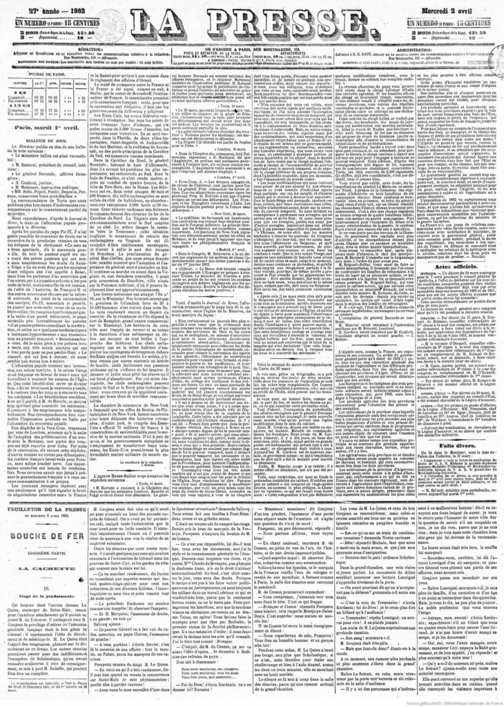 1. Adolphe Gaïffe, La Presse, 2 de abril de 1862.