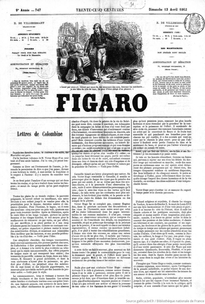 misérables le 3 avril 1862. Le Figaro. Paris, 2 abr. 2024. Disponível em: